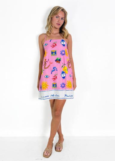 Capture the essence of coastal living in this breezy lightweight dress, featuring a vibrant beachy print that celebrates sun-soaked days and carefr...