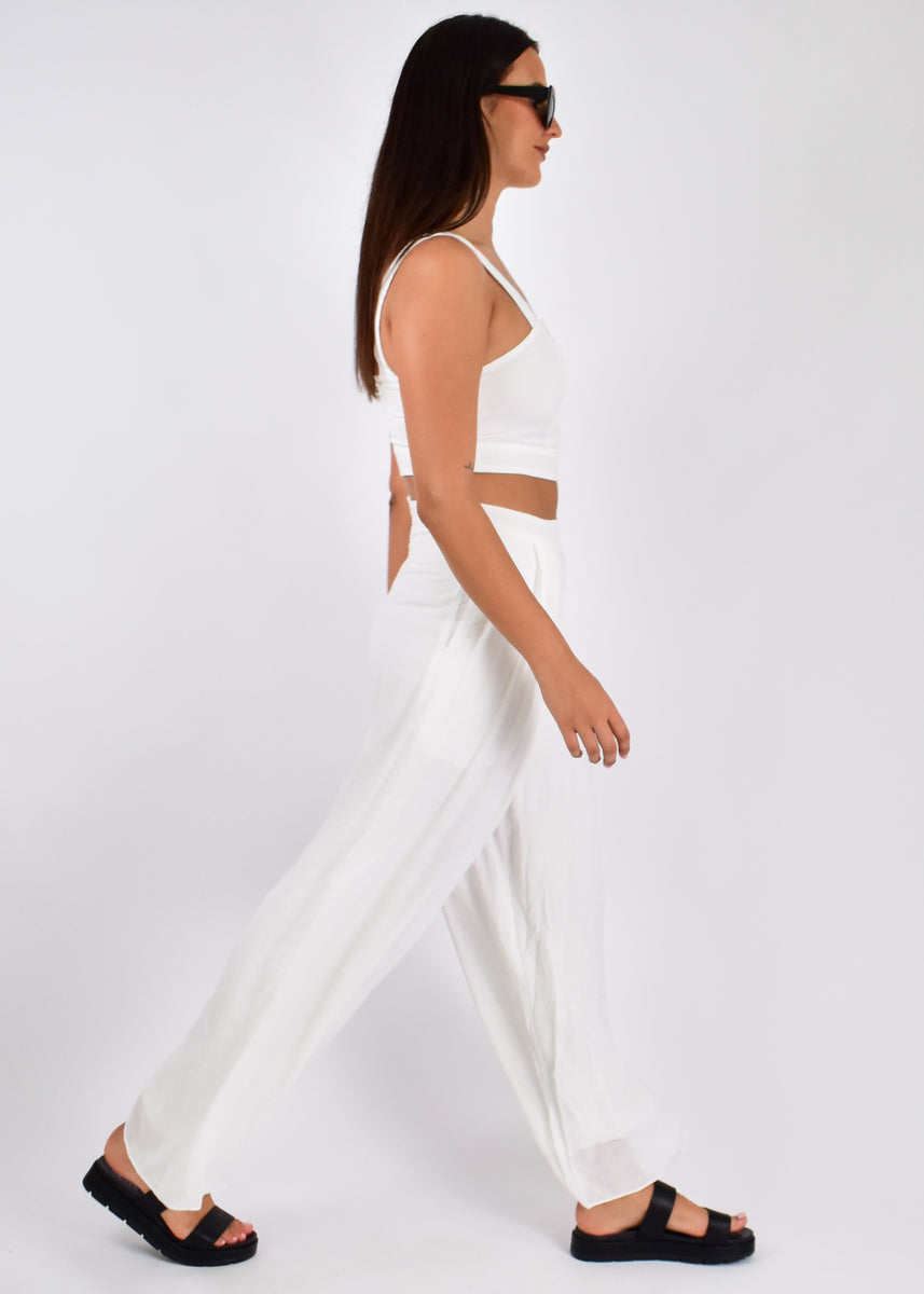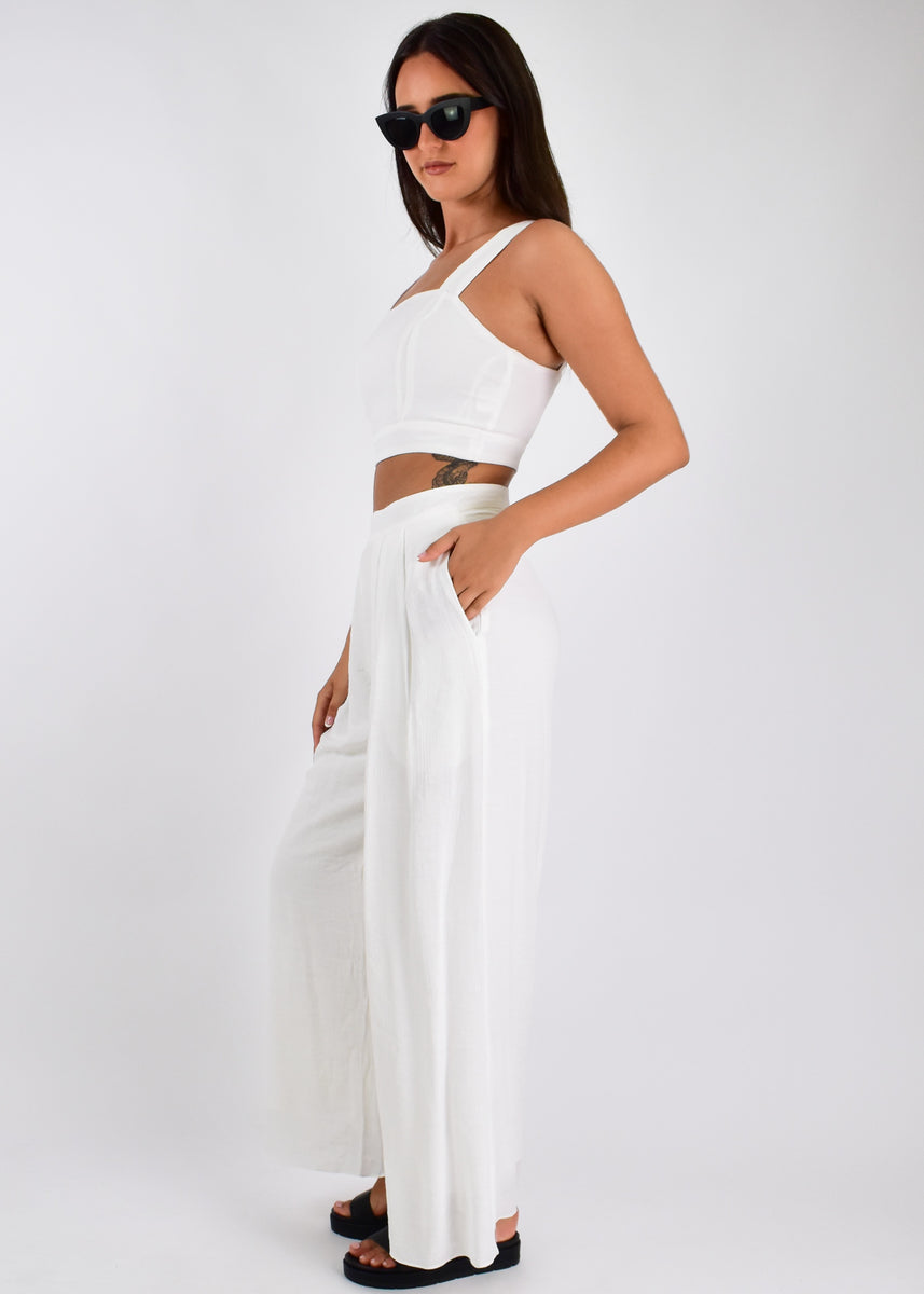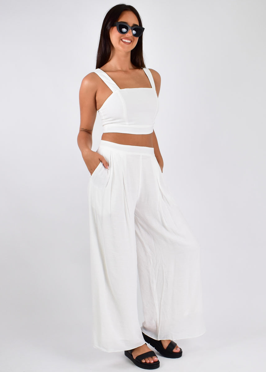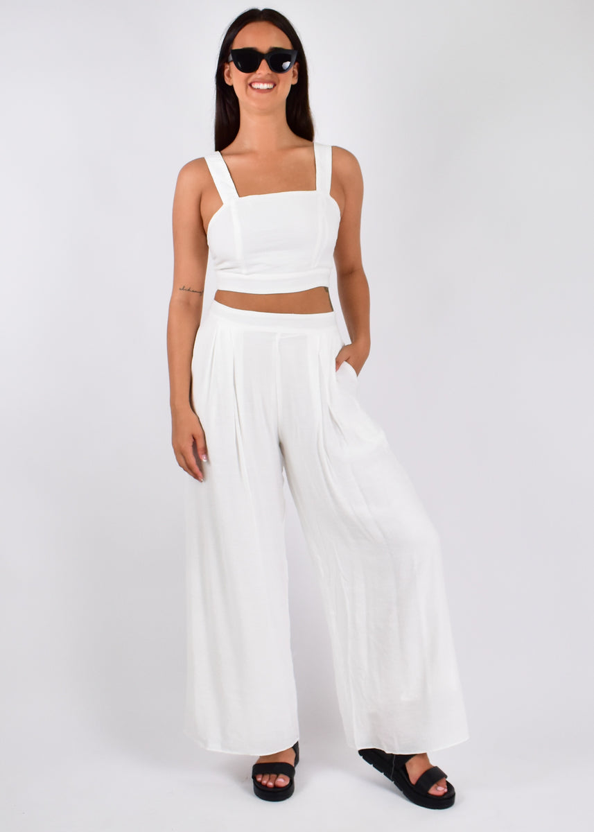 Our Sami pant pairs perfectly with it's matching Sami crop top for a minimalistic Summer look. Buy separately and pair the pants back with our Elyse top in Yellow for a feminine and cool Summer style