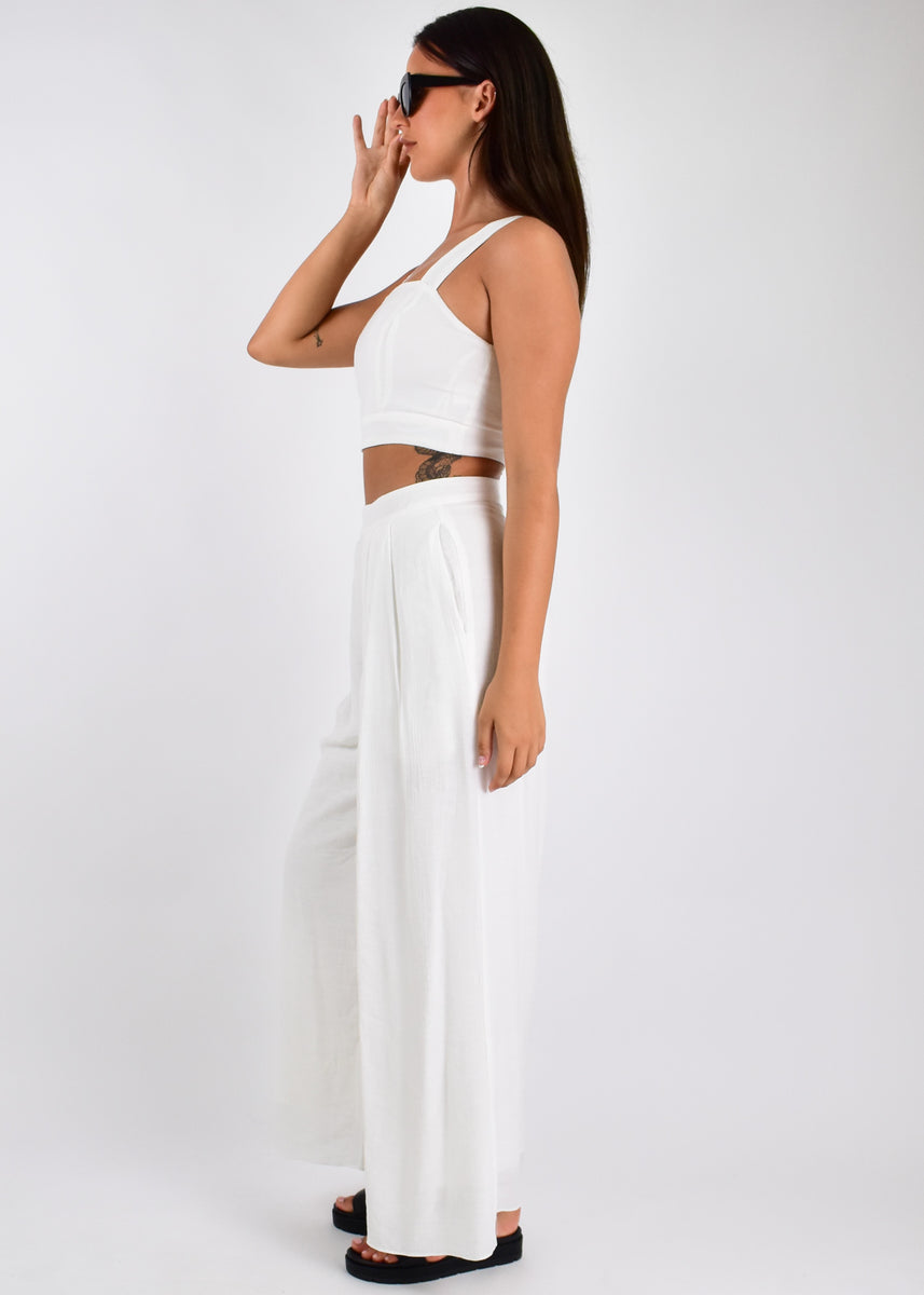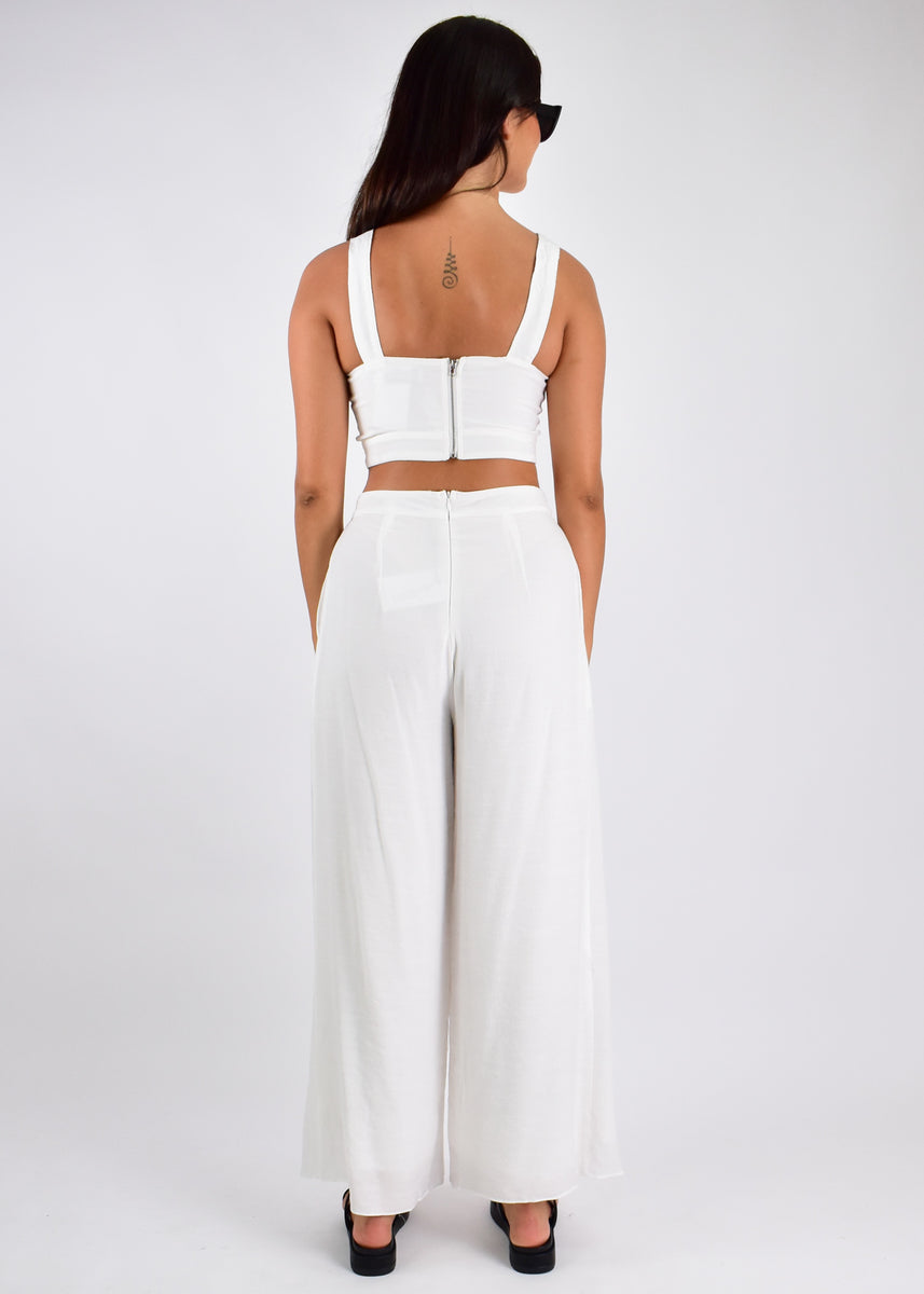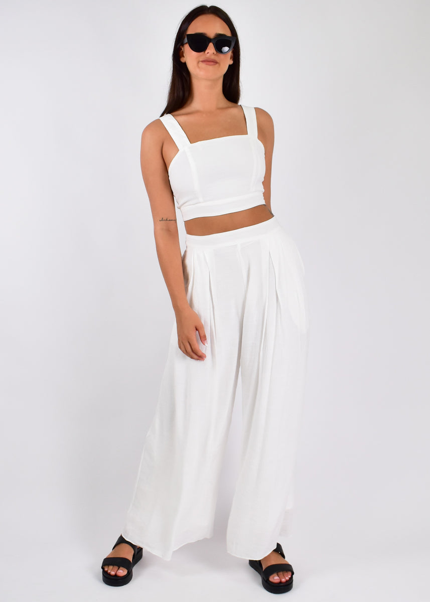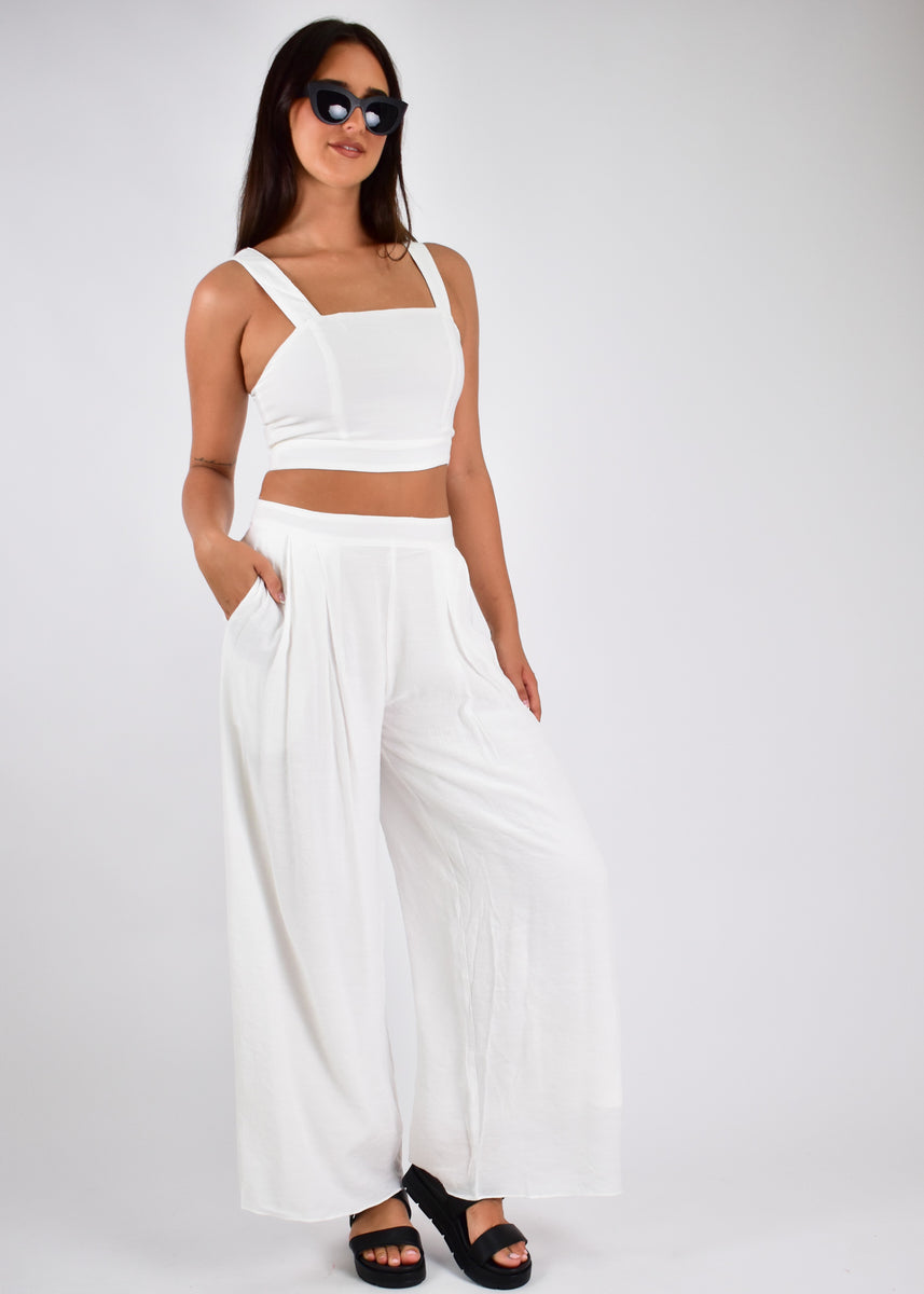 Our Sami pant pairs perfectly with it's matching Sami crop top for a minimalistic Summer look. Buy separately and pair the pants back with our Elyse top in Yellow for a feminine and cool Summer style
