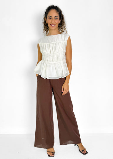 Elevate your wardrobe with the ORSULA Button Top in white, featuring a relaxed silhouette and stylish pleated shoulder panels. The button-through f...