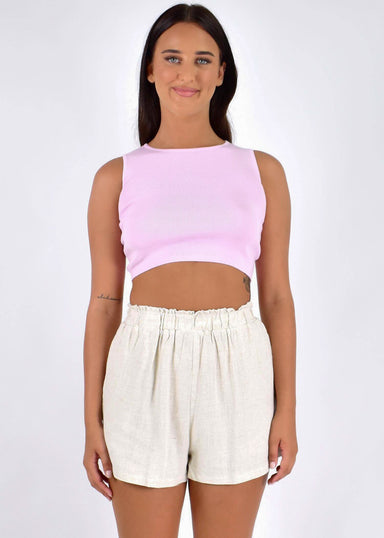 The best wardrobe basics staple, this cotton/linen crop top features a relaxed fit and decorative buttons down the back. Pair with all your fave hi...