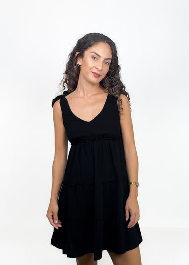 Elevate your everyday wardrobe with the PALU TOP, a versatile black essential featuring a charming front tie detail that adds instant sophisticatio...