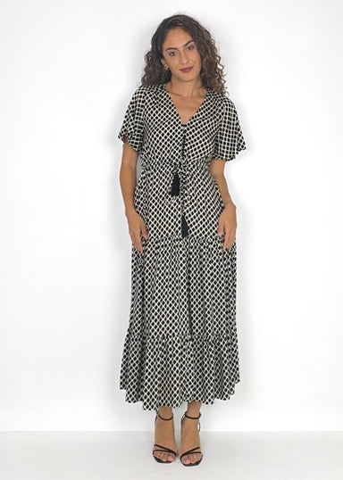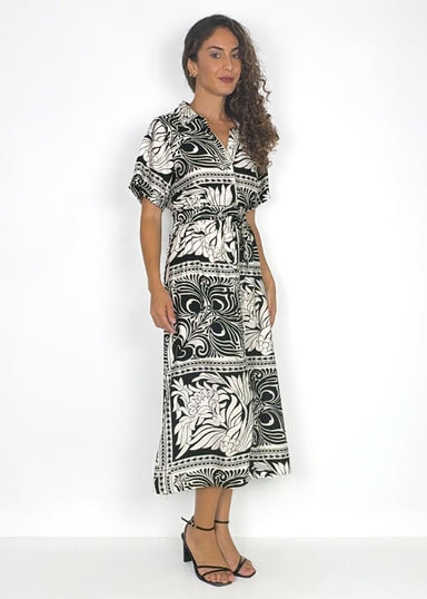 The VENA DRESS features a classic print and a flattering midi length, perfect for summer days. Its effortless style makes it an ideal choice for bo...