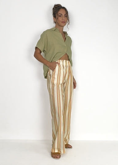 Slip into effortless summer style with these vibrant yellow and pink striped shorts, designed for laid-back beach days and casual adventures. The r...
