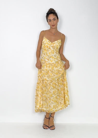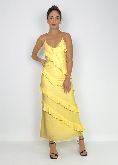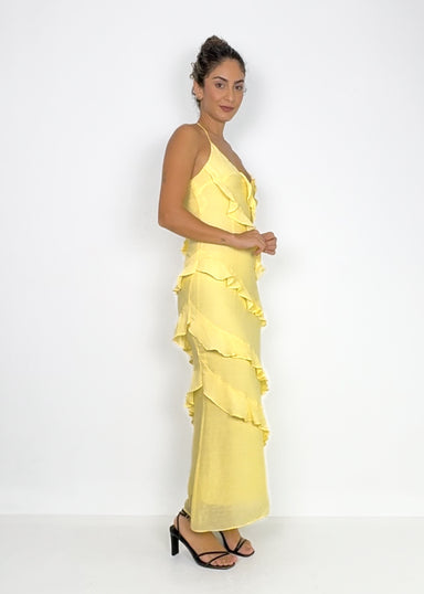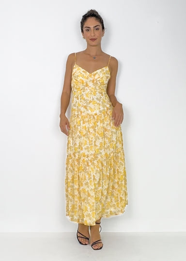 Radiate warmth and grace in the JAHARA, a soft yellow maxi dress that combines flattering ruched detailing with romantic beaded straps that tie in ...