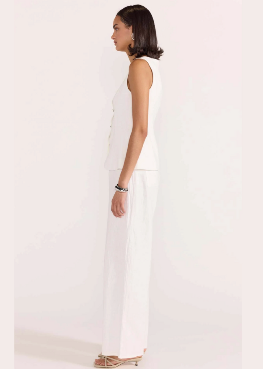 Discover the timeless versatility of our EDEN PANTS - a must-have for any wardrobe. As the temperatures rise, elevate your style with this crisp, white linen blend option. Complete the look with our EDEN VEST, and embellish with jewellery to highlight the elegant buttons. Whether you prefer heels or sandals, these pants are the perfect choice for any occasion.