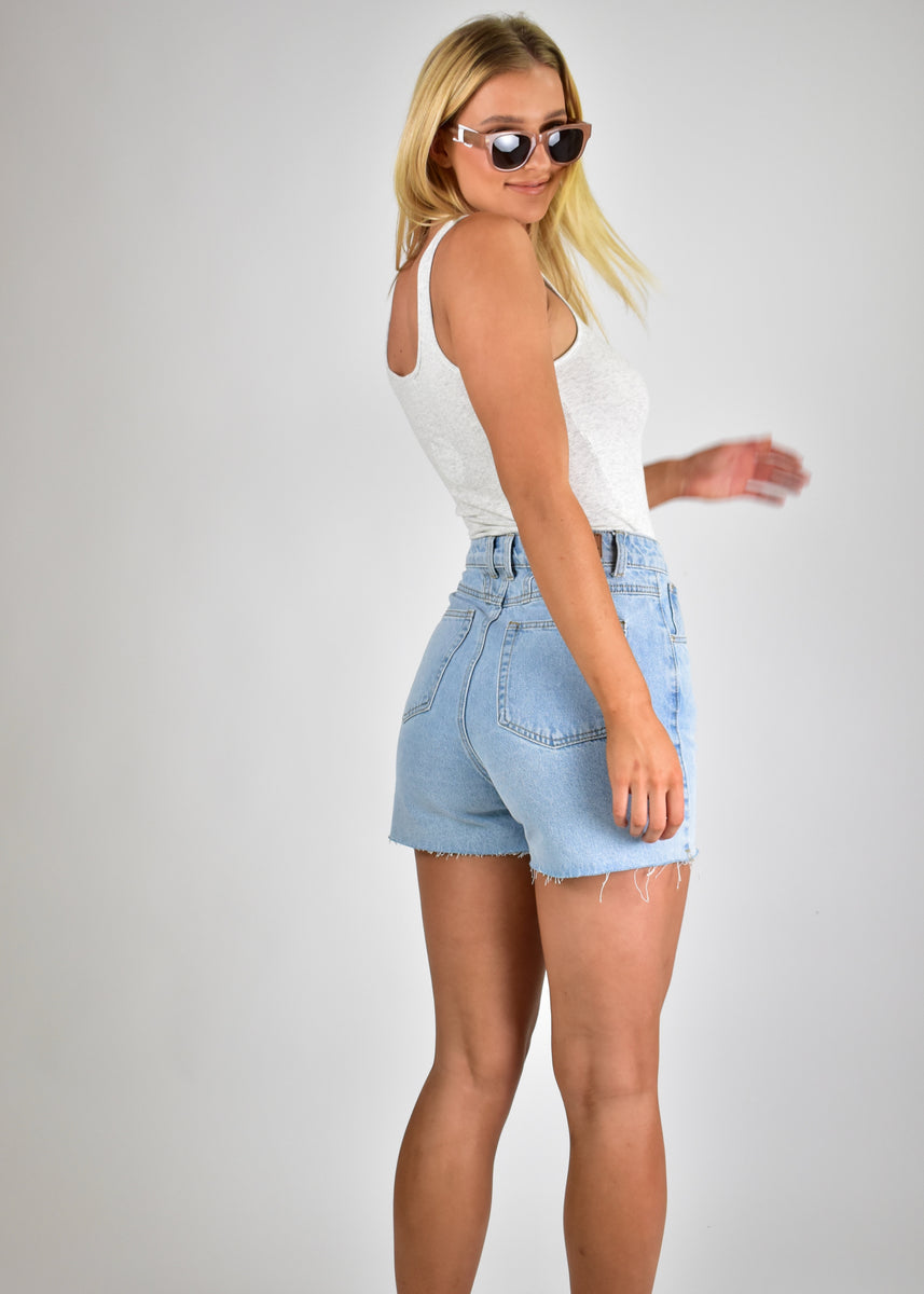 JAMES Denim Shorts deliver quality and style with a high waisted silhouette and raw hem, adding a touch of effortless cool to any summer look. Comfort and confidence are sure to come your way in these shorts!