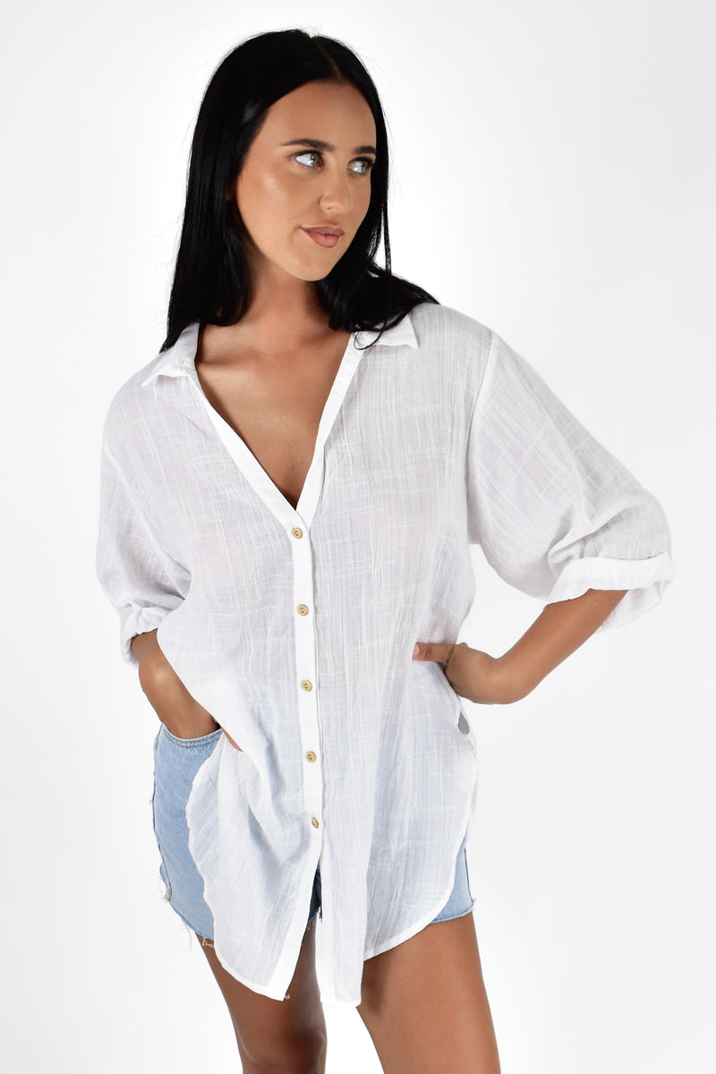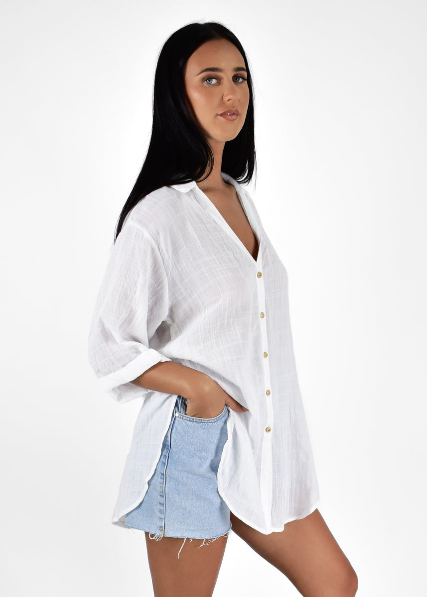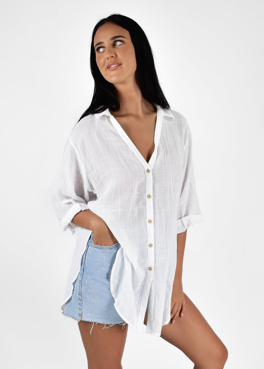 Our best selling Myki Shirt is a go to wardrobe staple. Timeless and classic, you can tie up, tuck in or wear loose!