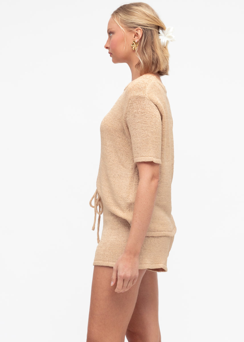 • Top is relaxed in a T shirt style