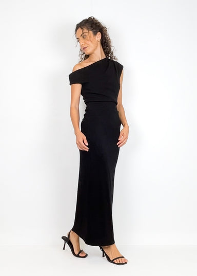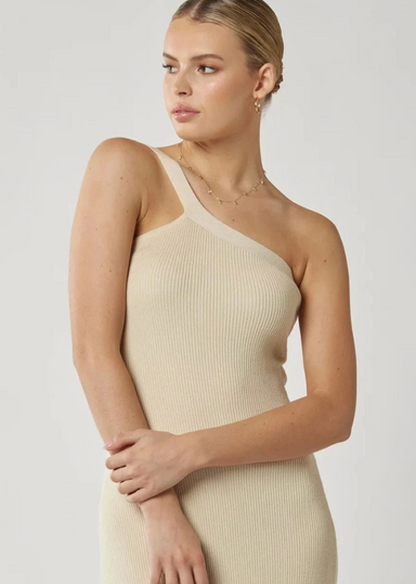 The SERATA ASYM MIDI DRESS dress brings understated sophistication to your warm-weather wardrobe with its graceful one-shoulder silhouette and flow...