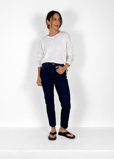 The Nicki Top in white is an absolutely perfect wardrobe staple. Its versatile knit fabric offers a comfortable, flattering fit that pairs effortle...