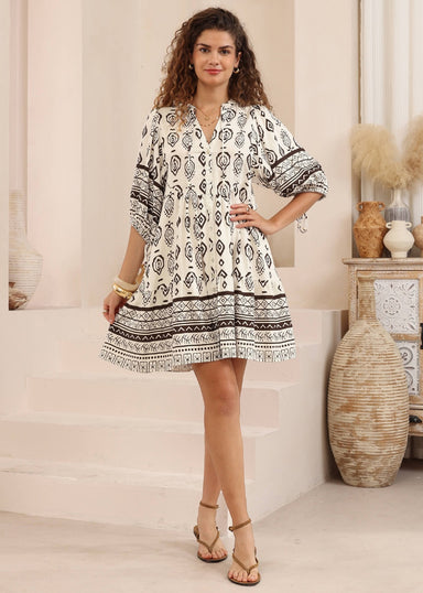 This print shift dress embodies relaxed sophistication, making it your new essential for sunny days and casual adventures. Style it with minimal ef...