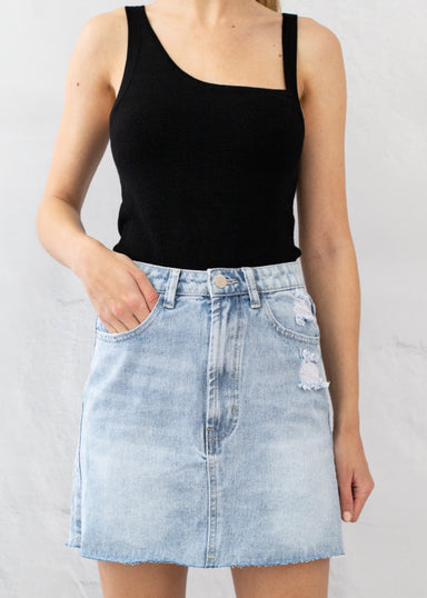 Elevate your wardrobe with our KHAO DENIM SKIRT, the perfect basic mini denim skirt. Versatile and timeless, this skirt will effortlessly transitio...