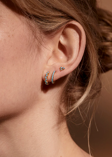 The Mika Studs are a small stud style featuring a small turquoise stone and crystal. Wear on their own for a simple everyday look or wear layered t...