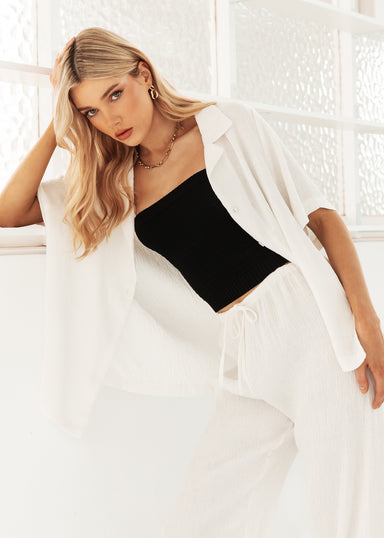 Effortlessly layer this oversized sun cover for a relaxed, resort-ready look that pairs beautifully with our Laya shorts. The breathable white desi...