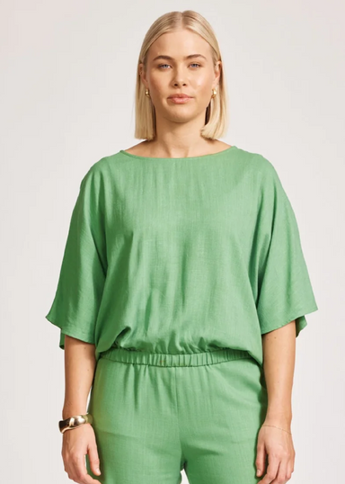 The ALESIA TOP in JADE is a versatile everyday essential with relaxed short sleeves and a flattering round neckline. Its elasticated hem offers mul...