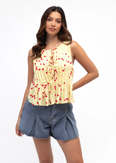 This adorable cherry-printed top is the perfect pick for sunny days and carefree summer vibes. Pair it with your favourite shorts or skirt for an e...