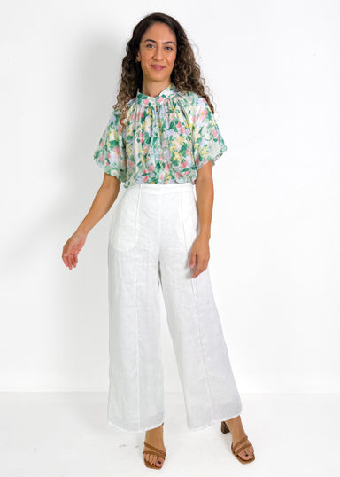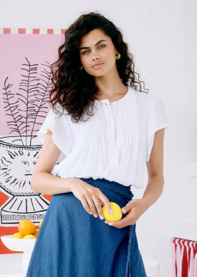 Elevate your wardrobe with the ORSULA Button Top in white, featuring a relaxed silhouette and stylish pleated shoulder panels. The button-through f...