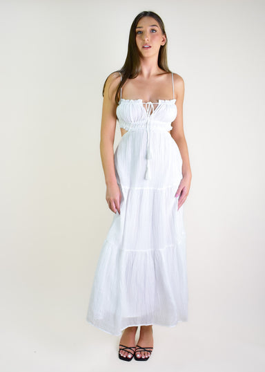 Be the talk of the town in the Chanell Dress - White! This versatile and best selling dress is the ultimate Summer companion. Pair it with our Diaz...