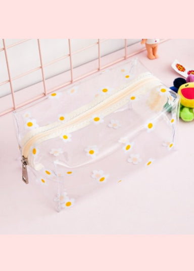 CLEAR TOILETRIES BAG - WHITE/YELLOW FLOWERS