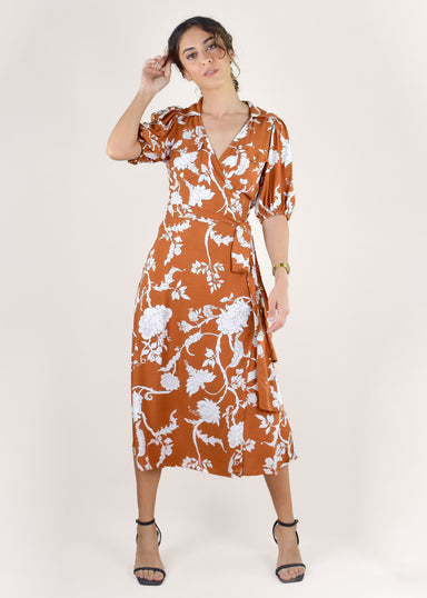 Make an entrance in the Cielo Sheath Midi Dress, where an eye-catching abstract floral print in sky blue, chocolate, and ivory elevates your everyd...