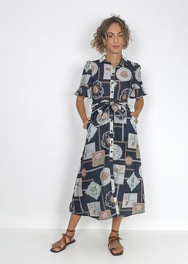 The HEIDI DRESS features a classic print and a flattering midi length, perfect for summer days. Its effortless style makes it an ideal choice for b...