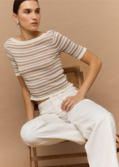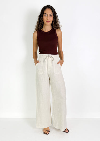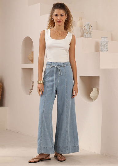 The ORSULA CROP PANT offers a modern silhouette with a relaxed straight leg and a drawstring waistband featuring stylish resin-tipped ties. Its fla...