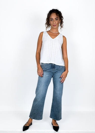 The NILSA BUTTON TOP brings a fresh, stylish touch to your summer wardrobe. Featuring elegant cutout embroidery on the sleeves, it adds a unique an...