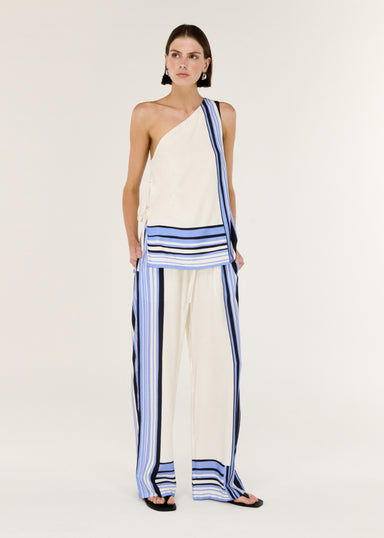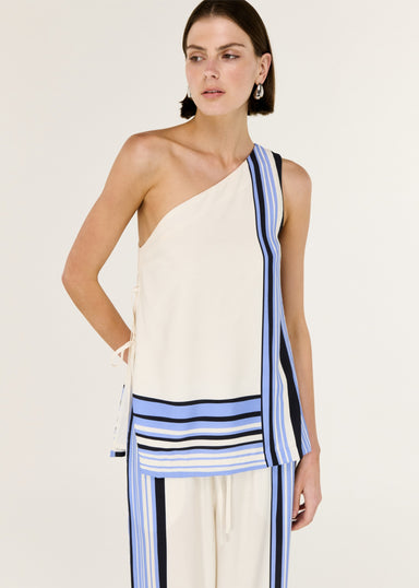 Minimal yet striking, the Amari Stripe One Shoulder Top is designed to elevate everyday dressing. Crafted from a luxe viscose blend twill, it drape...