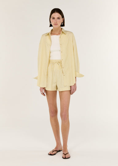 The Zeno Butter Yellow Striped Shorts offer a polished yet effortless summer silhouette. Crafted from lightweight polyester, this style features a ...