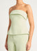 - Top: Strapless with folded detail and anti-slip tape at neckline, panel seam design, lace up back feature, peplum hem, side invisible zip with hook and eye closure