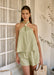 - Top: Halter neck with bead with elasticated back and A-line fit