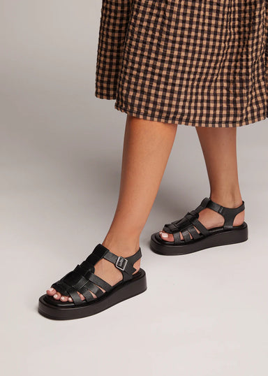 HEIDI LEATHER SANDALS - BLACK