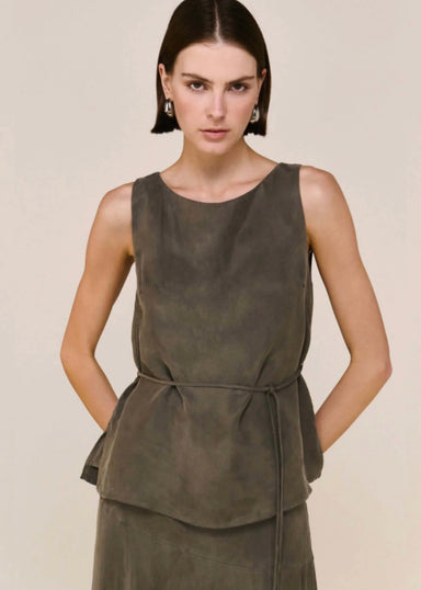 An elevated essential designed for modern, understated dressing. The Stevie Olive Cupro Waist Tie Tank is crafted from a fluid cupro blend with a s...