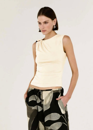The Blair Cream Ruched Slinky Tank is a refined essential designed to elevate everyday looks. Crafted from a soft stretch jersey, this sleeveless s...