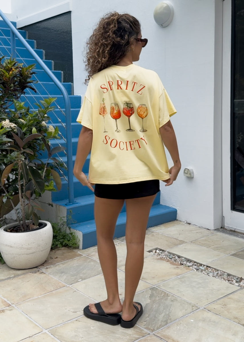 Indulge in leisure or brunch with the SPRITZ SOCIETY TEE. This comfortable and stylish tee is perfect for any laid-back occasion. Enjoy the perfect balance of relaxation and style with this must-have addition to your wardrobe.