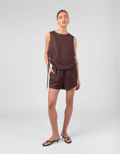 ALTA VISTA LINEN SHORTS- CHOCOLATE