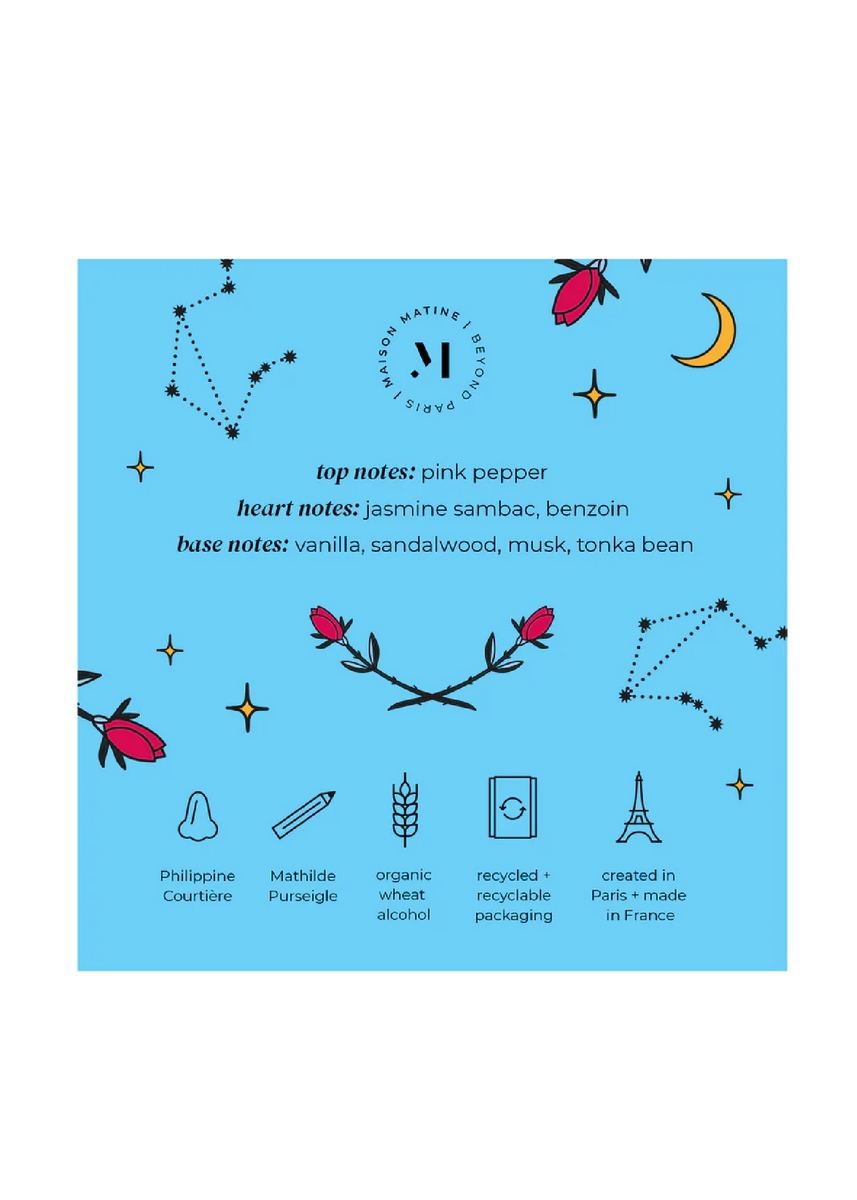 - Base notes : vanilla, sandalwood, musk, tonka bean.
