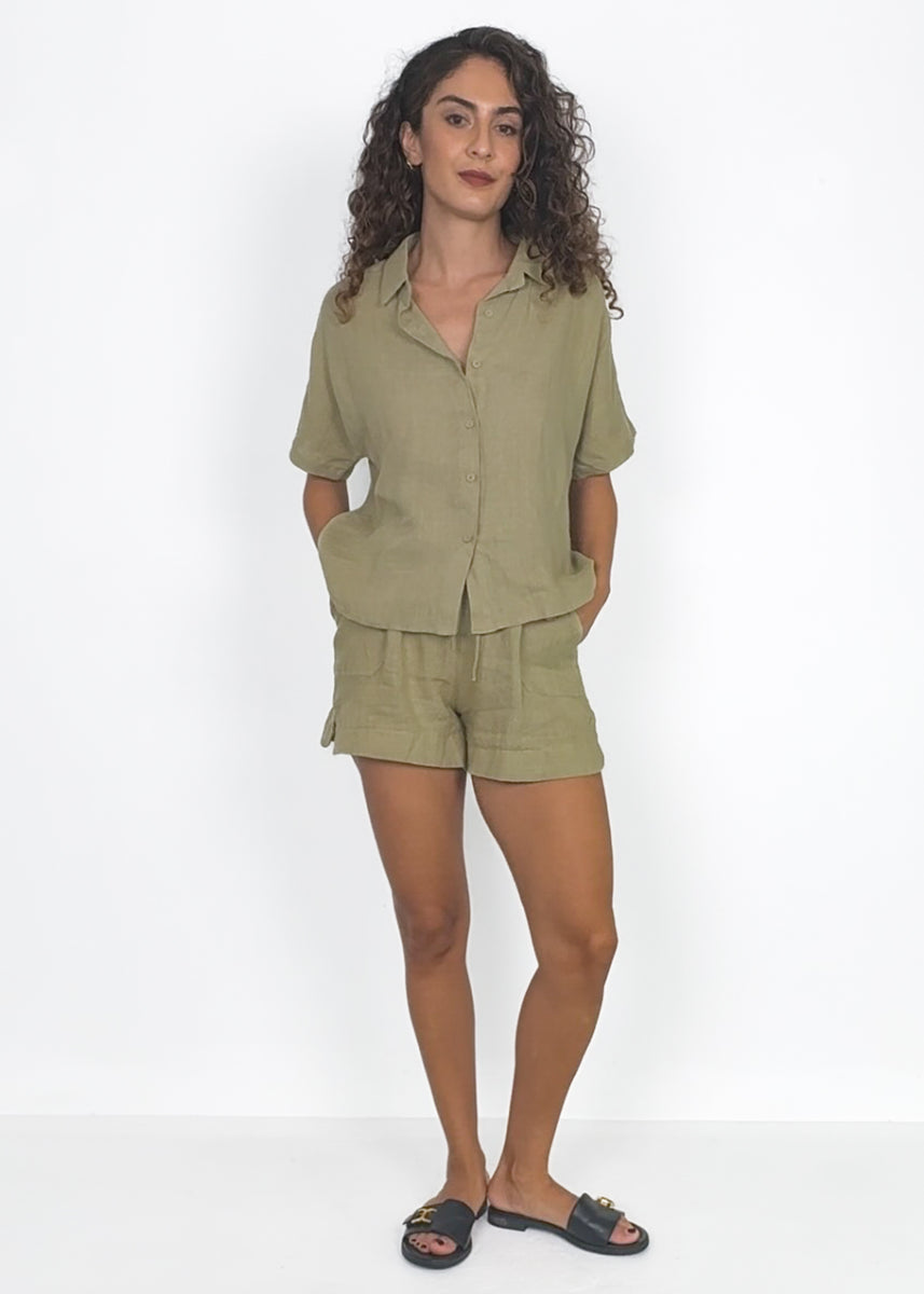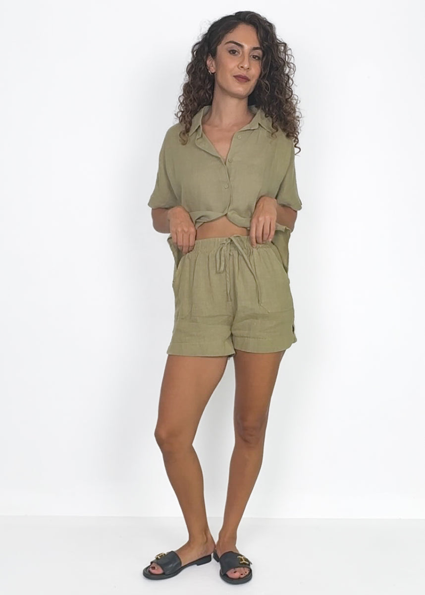Complete your stylish summer look with our Bronte Shorts! Designed to pair perfectly with our Bronte Shirt, these shorts offer maximum comfort and versatility. Elevate your wardrobe with this must-have matching set!