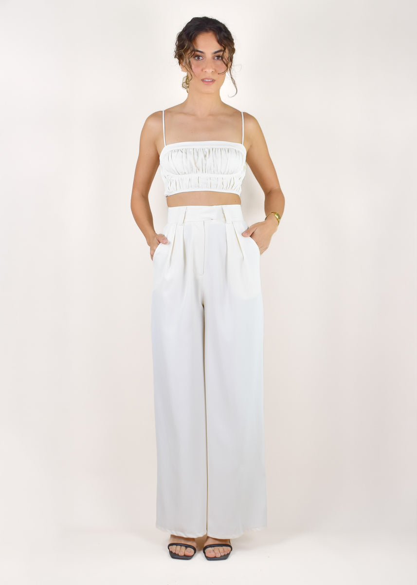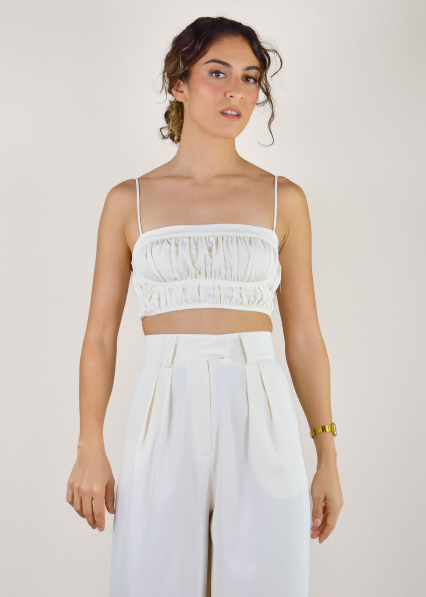 Live your best life with the Cara Top, inspired by Bianca Jagger's classic style. With its timeless look and versatile design, you can mix and match pieces for any occasion or pair with her matching Cara Pants for a truely swanky look