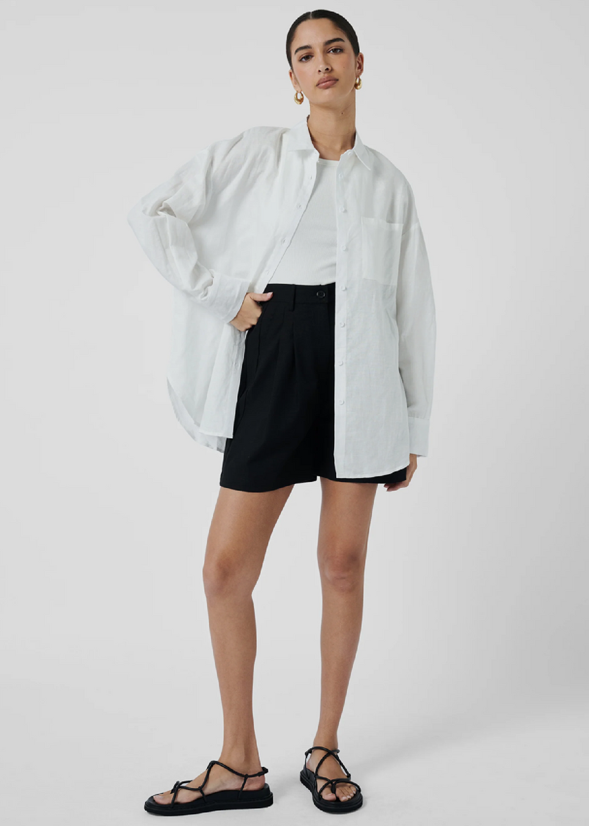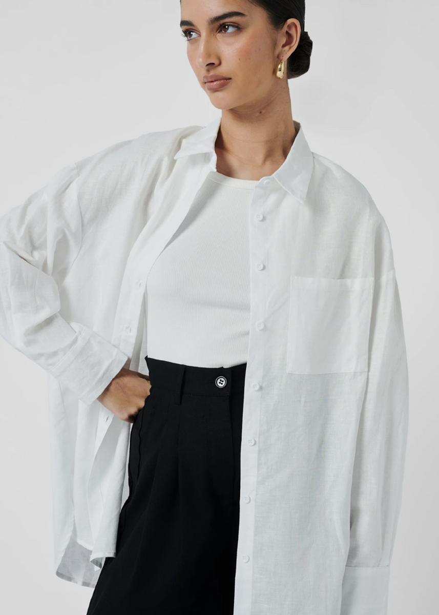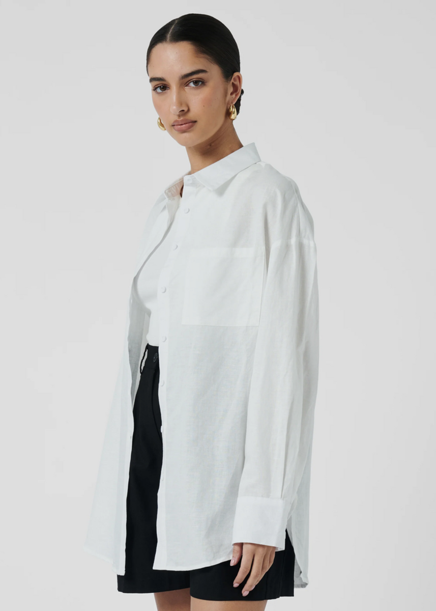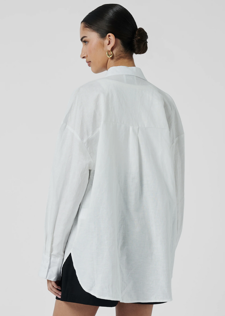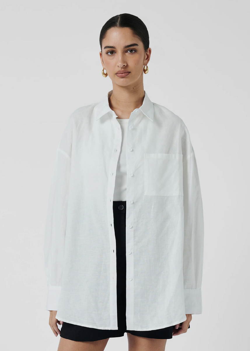Elevate your wardrobe with our must-have Cloud Runner Shirt in timeless white linen. This button down will bring effortless style to any occasion with its versatile and classic design. A staple for every wardrobe, you won't want to miss out on this essential piece!