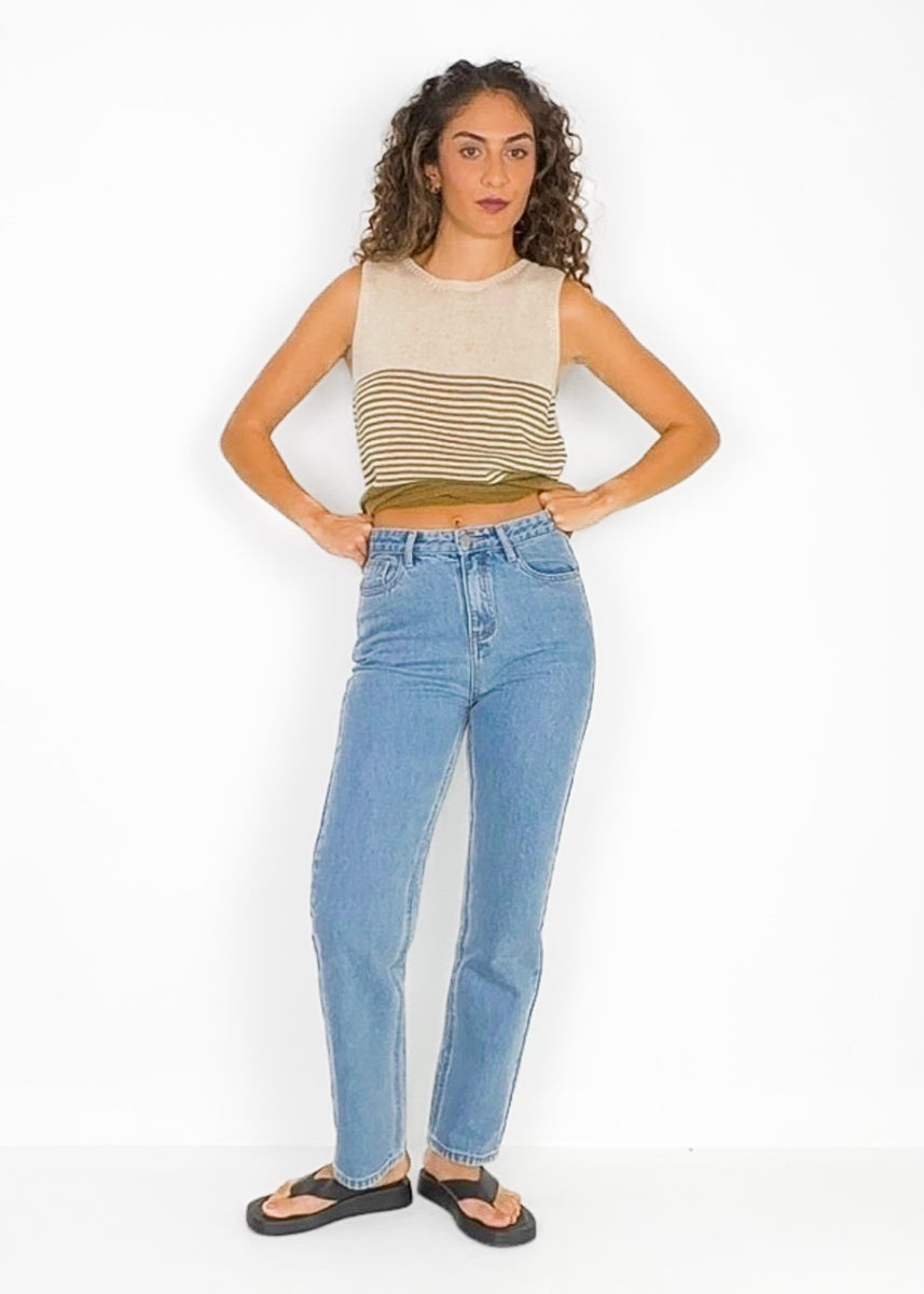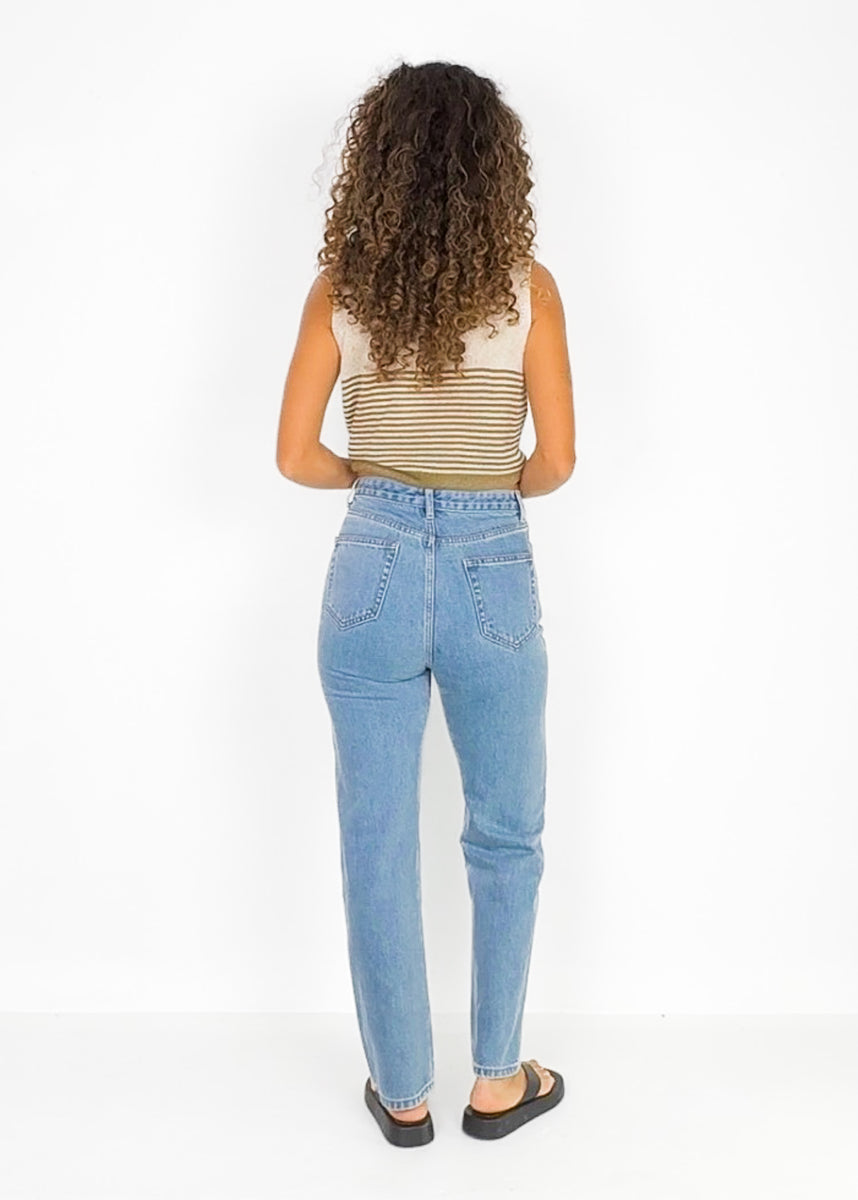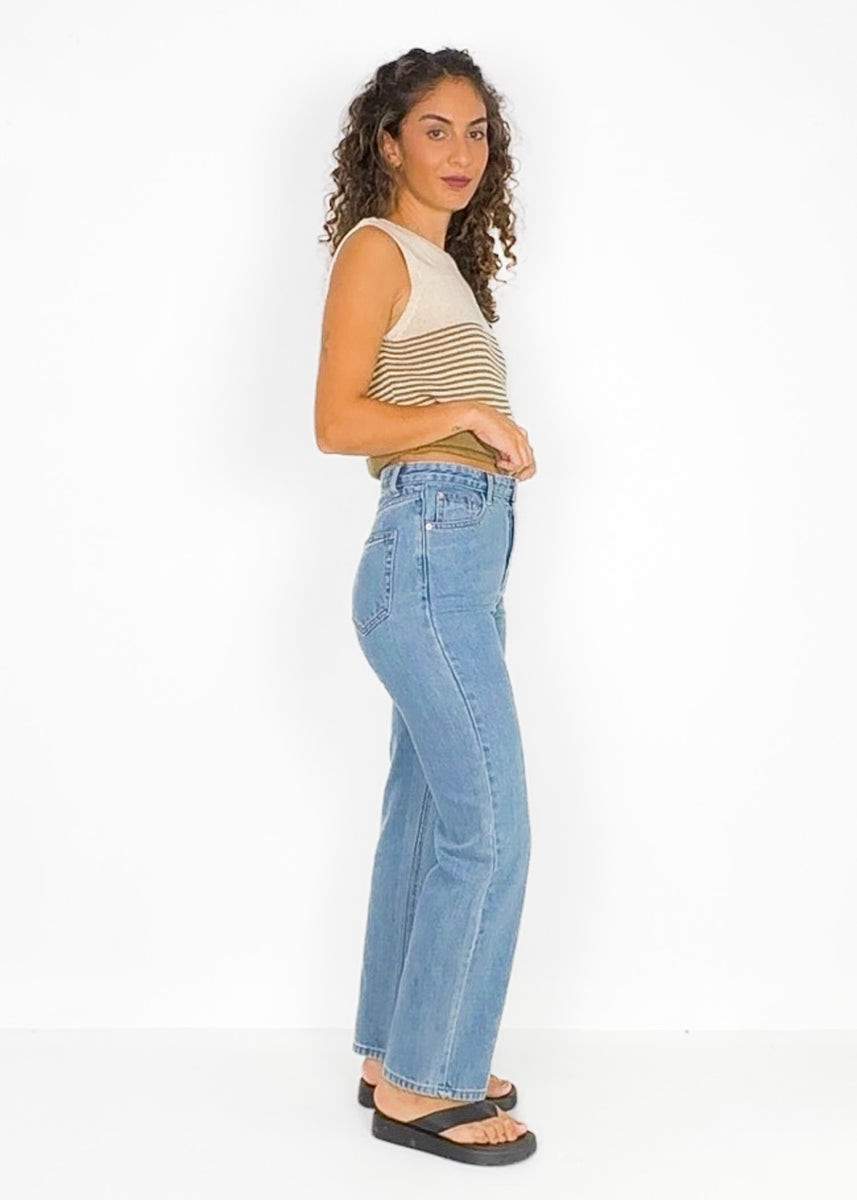 Cora Jeans are a must-have for any denim lover. Crafted from a mid blue, classic denim material, these jeans are both stylish and comfortable. Elevate your wardrobe with the timeless appeal and versatile design of Cora Jeans.