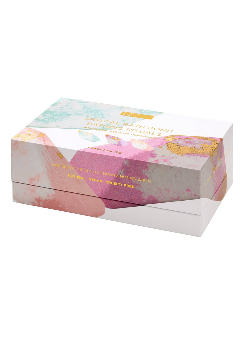 Immerse yourself in an explosion of colour with our Crystal Bath Bomb Bathing Rituals. Complete with our Aquamarine, Rose Quartz & Amethyst Bath Bombs. Transform your bath time into a luxurious ritual as you experience the loving vibes of Rose Quartz, the serenity of Amethyst and the refreshing aura of Aquamarine Bath Bombs. Elevate your self-care routine and enjoy the enchanting benefits of our crystal inspired bath bombs with every fizzy soak.