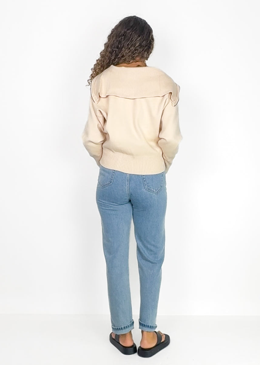 Elevate your weekend style with the ELI JUMPER in CHOCOLATE. This classic jumper is perfect for creating a cosy and comfortable look. Enjoy the luxurious feeling and effortlessly stylish design.
