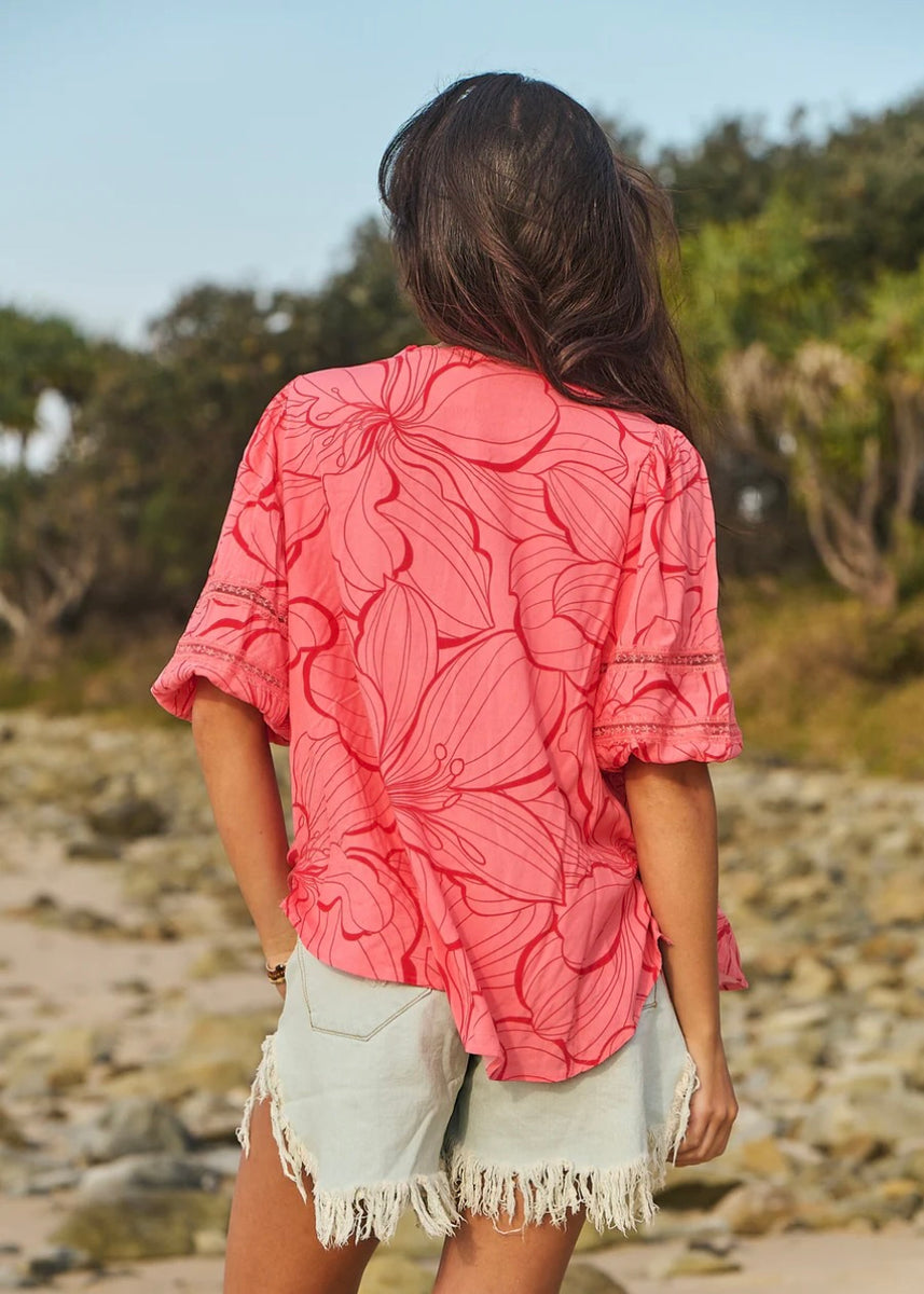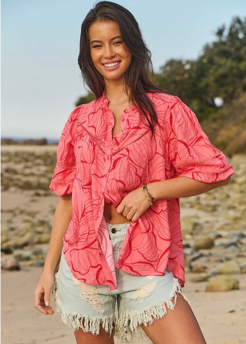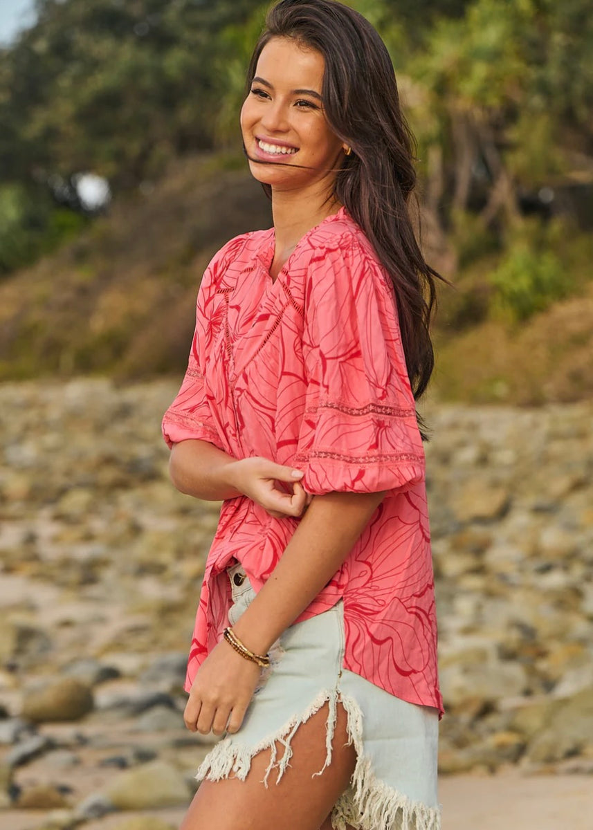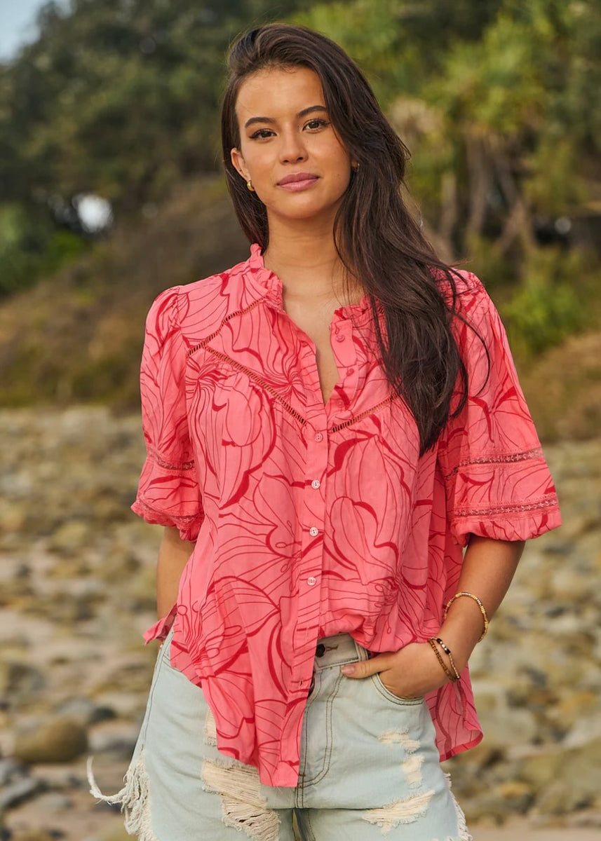 Feel the joy of spring every time you slip into our ELIZA BLOUSE! The relaxed fit and pretty design will make you feel effortlessly chic all day long. Embrace the warmth of the season with this must-have addition to your wardrobe.