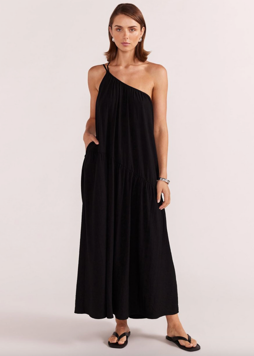 Impress with effortless elegance in our EVA ONE SHOULDERED MAXI DRESS. This breezy and elegant piece is the perfect addition to your summer wardrobe. Pair it with your favourite leather sandals for a chic and stylish look.