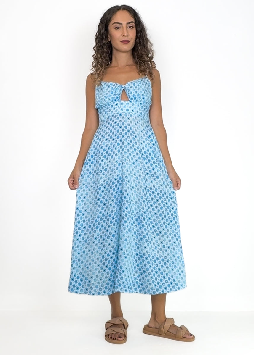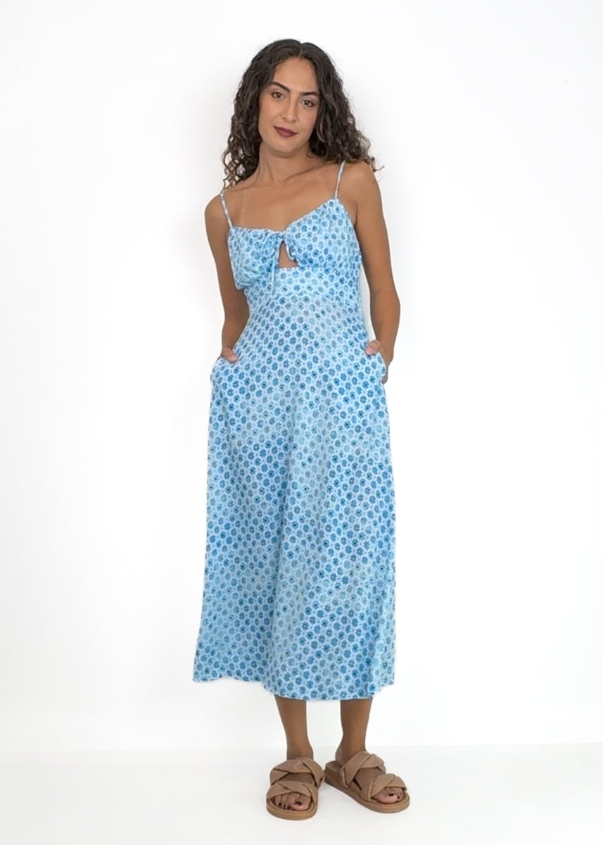 Unleash your style with the GWEN DRESS! This light weight dress is perfect for summer, keeping you cool and stylish. Stand out from the crowd with its intricate blue print, making you the centre of attention.