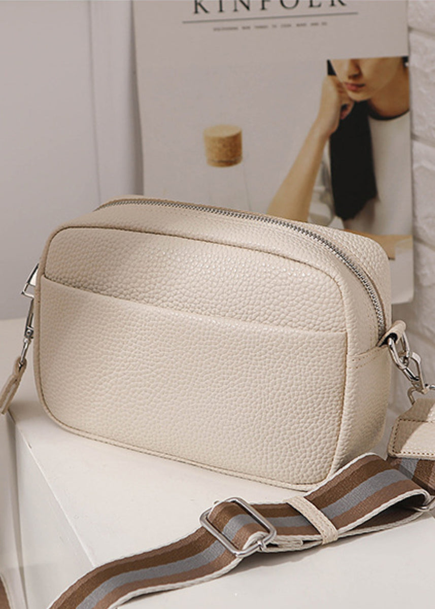 Introducing the Joss Bag, perfect for everyday use and weekend adventures. Crafted with textured vegan leather and silver hardware, this stylish cross-body bag stands out with its adjustable and detachable strap. It's the perfect fit for your wallet and phone, with a zipped internal compartment for added security. Make Joss your next go-to bag!