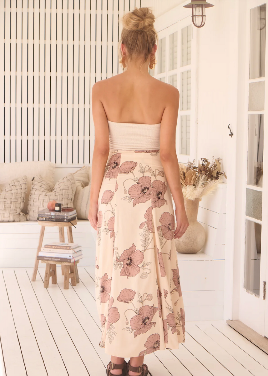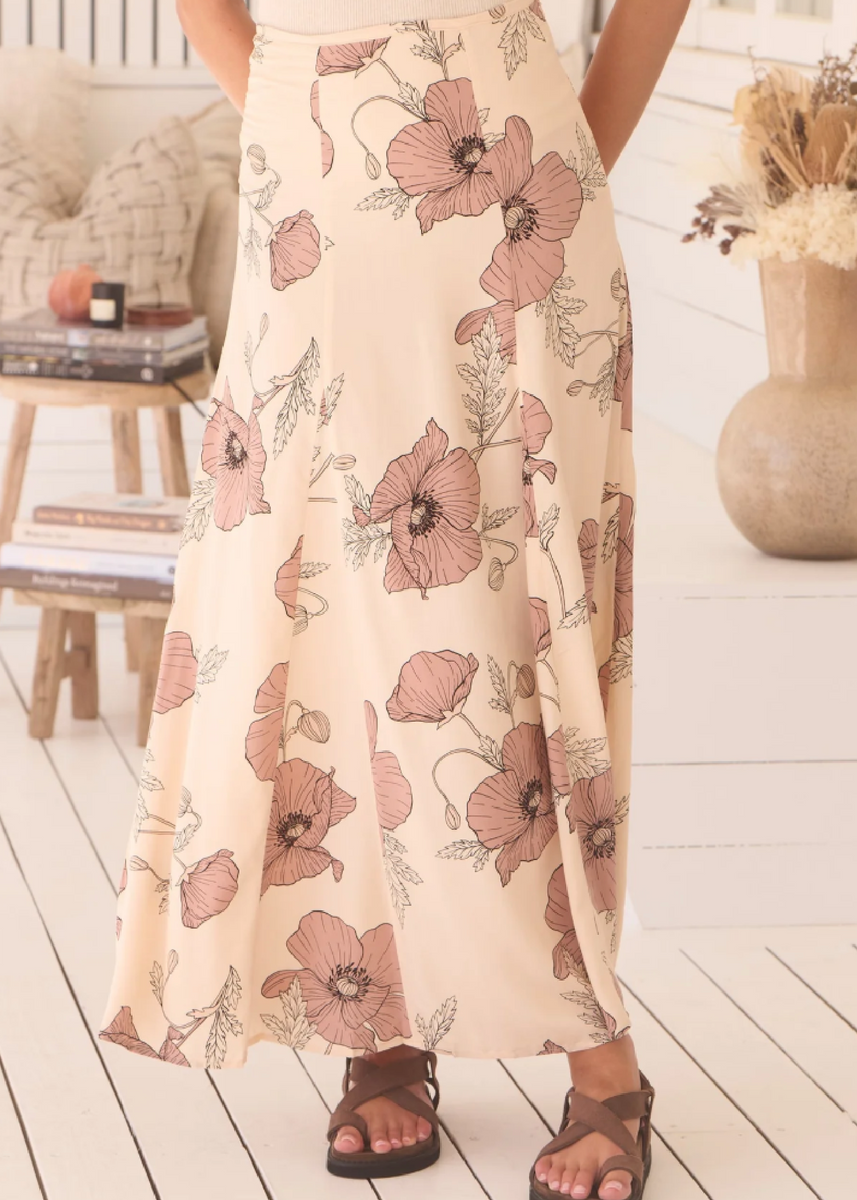 Experience bohemian bliss in our KHLOE MAXI SKIRT - APRIL PRINT! This dreamy maxi skirt is perfect for adding a touch of free-spirited style to your wardrobe. With its flowy silhouette and floral print, you'll feel like you're walking on a cloud. Embrace your inner boho babe and make a statement in this must-have piece.