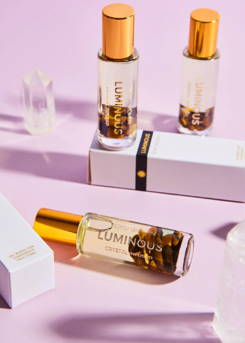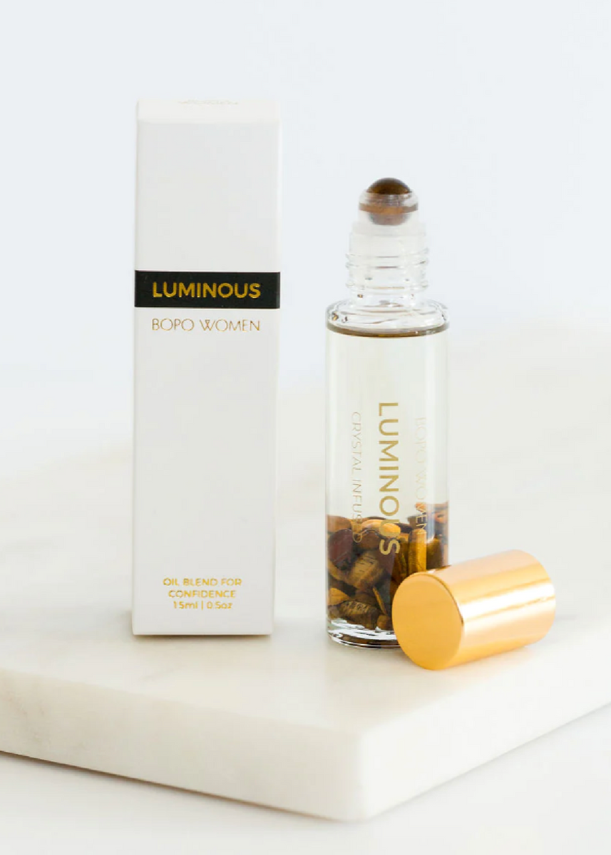 A crystal infused essential oil blend to help you cultivate confidence & inner strength. An earthy blend featuring Cedarwood and Frankincense with a touch of Ylang Ylang and Peppermint Oil. Perfect as a light natural perfume alternative. Features a Tigers Eye rollerball.